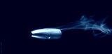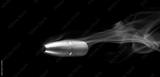 Near miss as seen when a copper bullet is flying by with smoke trailing behind