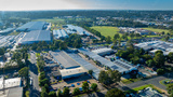 Drone aerial photograph of industrial buildings and surroundings in the Nepean Business Park in the greater Sydney suburb of Penrith in New South Wales in Australia