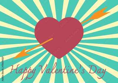 Red heart with arrow on Sunrays Illustration with Valentine's Da