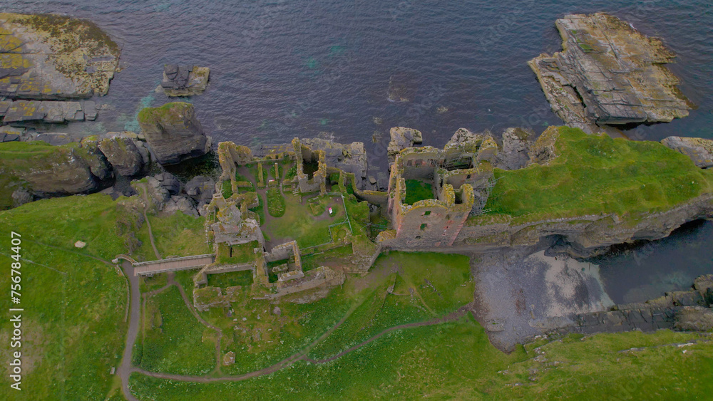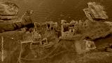 AERIAL TOP DOWN: Beautifully visible floor plan of remains of an ancient castle