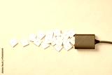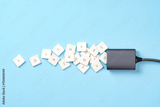 Concept of storing information on ssd disk with falling keyboard keys, symbolizing data storage and technology innovation.
