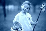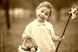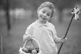 Cute preschool child, whipping his sister on Easter with twig, braided whip made from pussy willow, traditional symbol of Czech Easter used for whipping girls