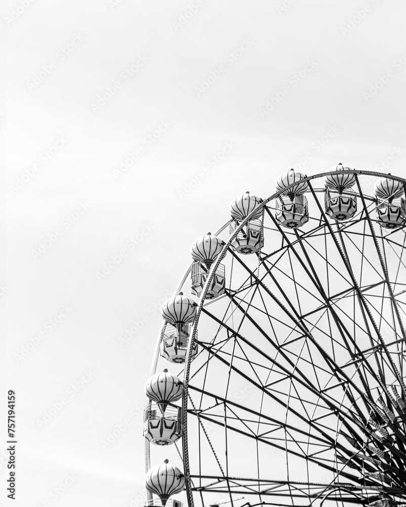 Ferris wheel. A part of a ferris wheel. Black and white and minimalist photography.