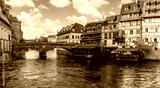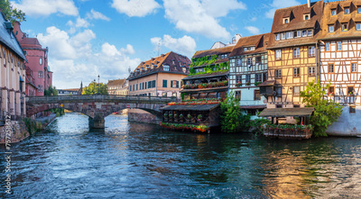 Le Petite France, the most picturesque district of old Strasbourg. Houses with reflection in waters of the Ill channels.