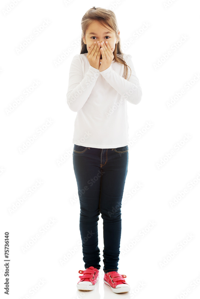 Girl covered her mouth with his hands