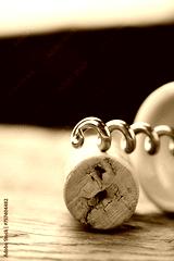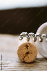 Close-up of wine cork and corkscrew on wooden table with copy space. Perfect for wine and restaurant-related concepts. Vertical photography.
