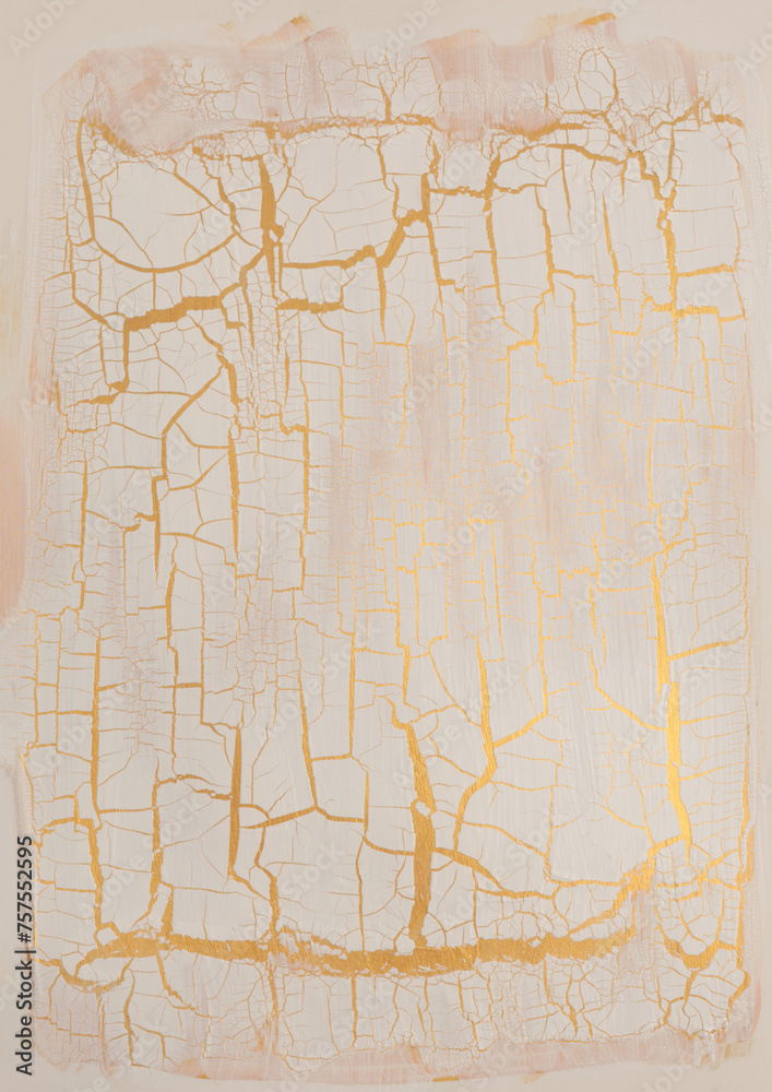 Craquelure scratch relief texture painting wall background. Gold, bronze, beige color.