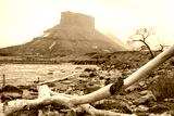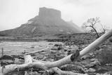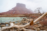 Colorado River at Rocky Rapid above Moab, Utah, in a foggy winter scenery
