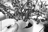 Home gardening, female hands in gloves transplanting greenery, plant care, interior decor