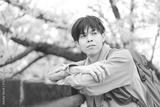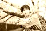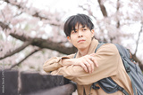 Portrait traveler asian man with backpack travel in japan spring sakura season