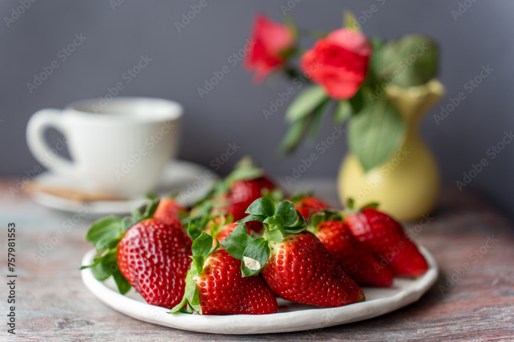 Beautiful ripe strawberries on the table