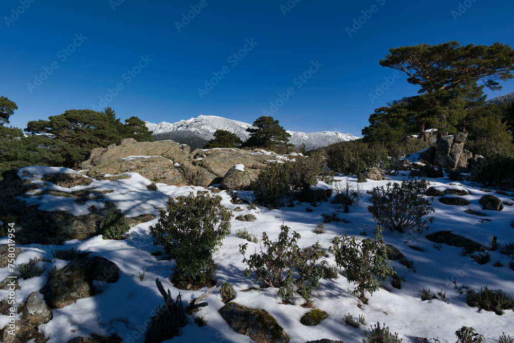 winter mountain landscape in the sierra de guadarrama mountains