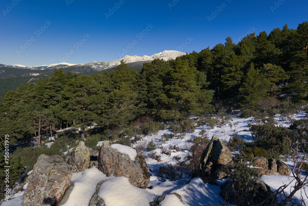 winter mountain landscape in the sierra de guadarrama mountains