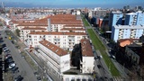 Italy, Milan 03-14-2024 Aler public housing blocks to be demolished in the suburban neighborhood of Giambellino Lorenteggio - Drone view of occupied poor homes - urban redevelopment of the suburbs