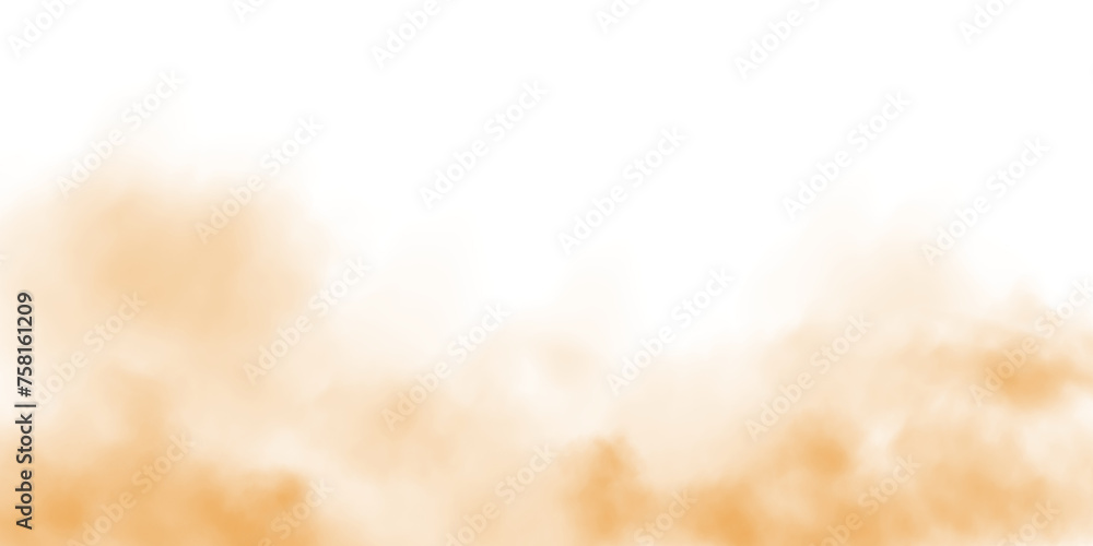 Yellow smog clouds on floor. Fog or smoke. Isolated transparent special effect. Morning fog over land or water surface. Magic haze. PNG.