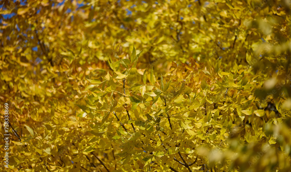 Yellow leaves on a Pennsylvania Ash tree on an autumn day