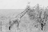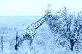Youbg giraffe eating from a tree