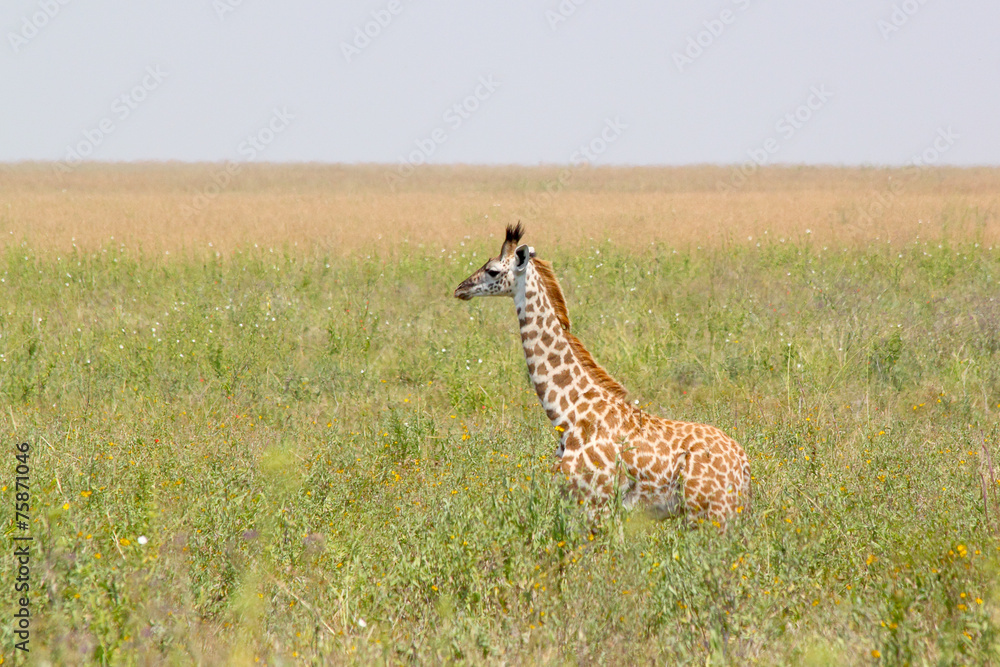 Baby giraffe in the grass