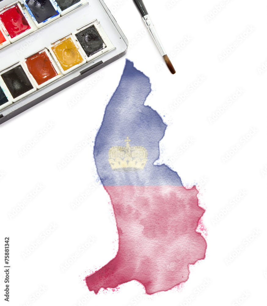 Watercolor painting of Lichtenstein in the national colors.(seri