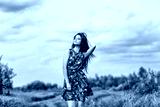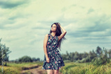 beautiful brunette in a field on a sunny day