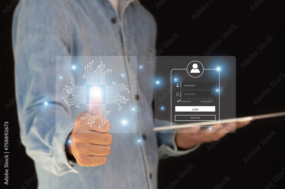User authentication system with username and password cyber security concept Security technology protects personal information. cyber security concept