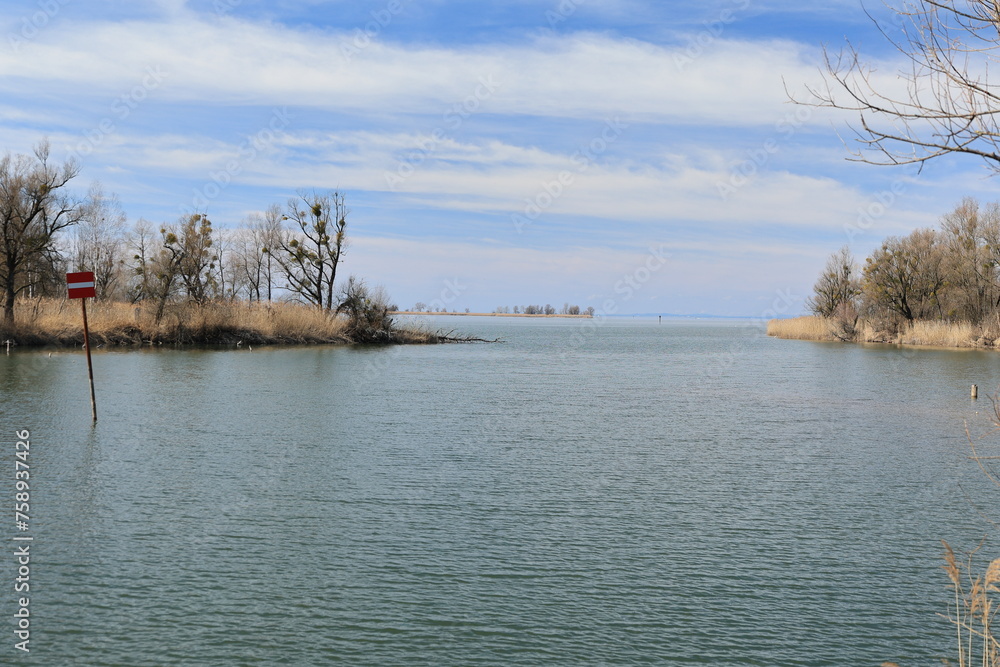 Blick auf die Naturlandschaft am Einlauf des Rheins in den Bodensee bei Hard in Österreich