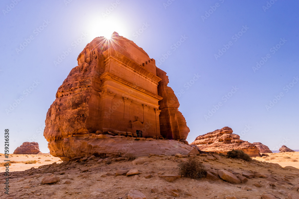 Qasr al Farid (Lonely castle) tomb at Hegra (Mada'in Salih) site near Al Ula, Saudi Arabia