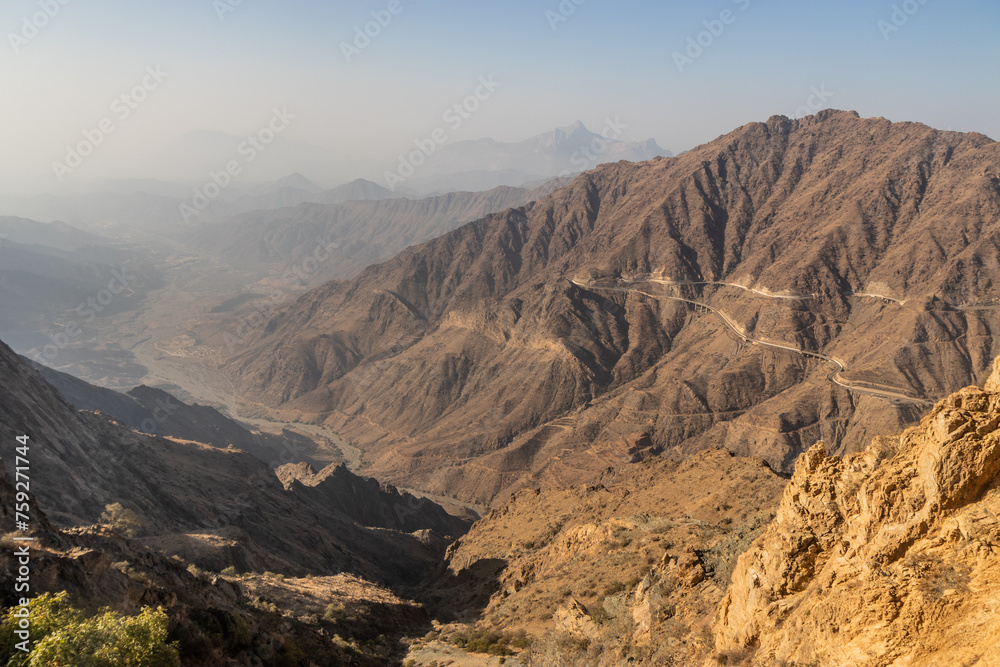 Deep valley with King Fahd Road in Sarawat mountains near Al Baha, Saudi Arabia