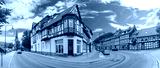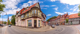 Panorama of medieval street, half-timbered houses and castle in Wernigerode, Saxony-Anhalt, Germany