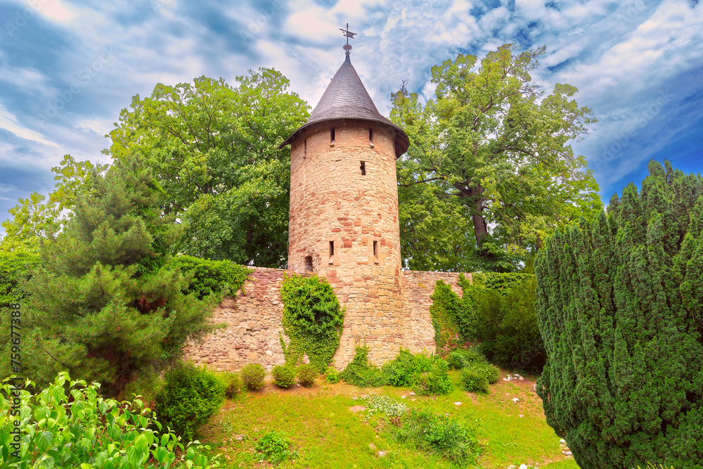 Medieval city wall tower Stadtmauerturm in Wernigerode, Saxony-Anhalt, Germany