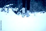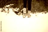 Person walking through snow wearing boots