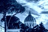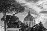 Kopuła Bazyliki św. Piotra w Watykanie widziana zza drzew.