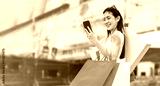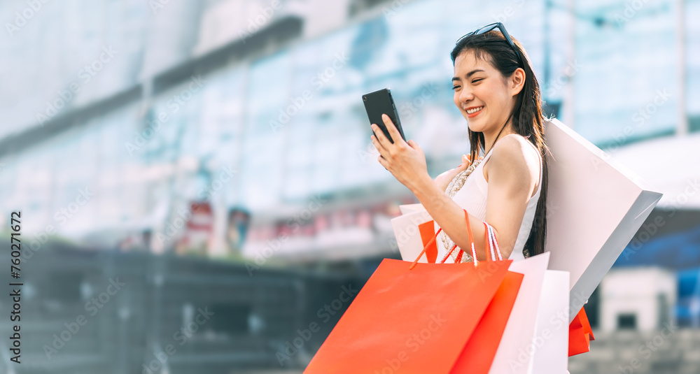 Asian woman happy smile face standing at outdoor with shopping bags people city lifestyles