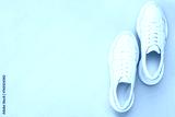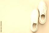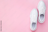 Pair of white shoes on pink background