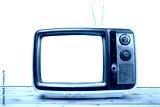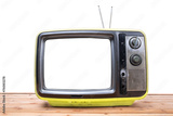 Yellow Vintage TV on wood table
