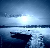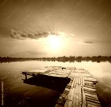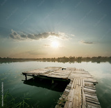Dawn on the lake with pier
