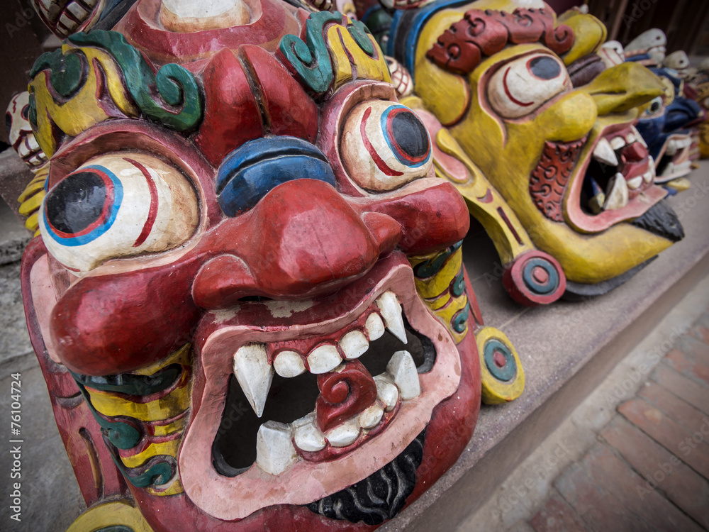 Traditional Nepalese Masks at Street Market in Kathmandu, Nepal