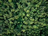 Aerial top view of green trees in forest. Drone view of dense green tree captures CO2. Green tree nature background for carbon neutrality and net zero emissions concept. Sustainable green environment.