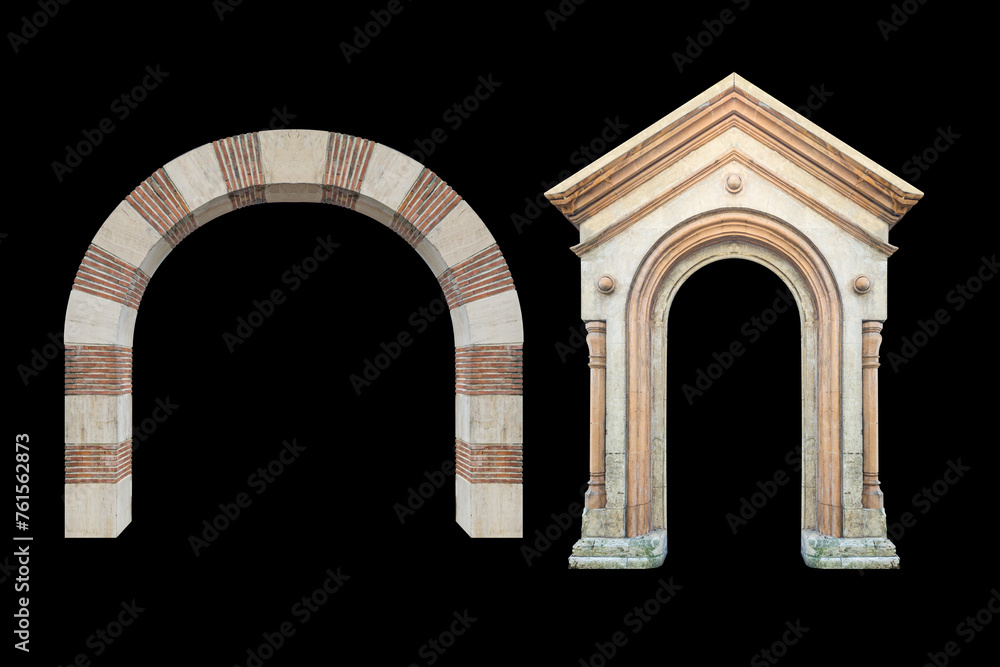 Details, elements of buildings classical architecture. Isolated on a black. Templates for art, design.