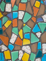 Abstract background of vibrant, broken mosaic tiles arranged in a random pattern