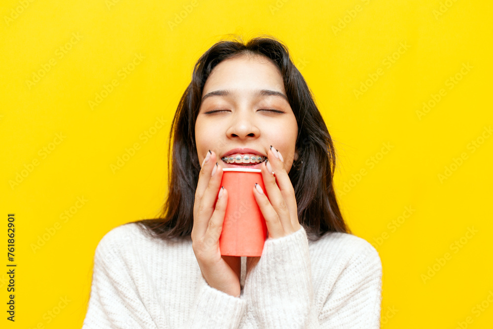 young african american woman with hipster colored dreadlocks thinking and holding her hair on yellow isolated background, pensive girl with unique purple hairstyle looking at copy space