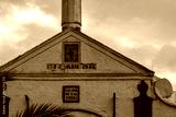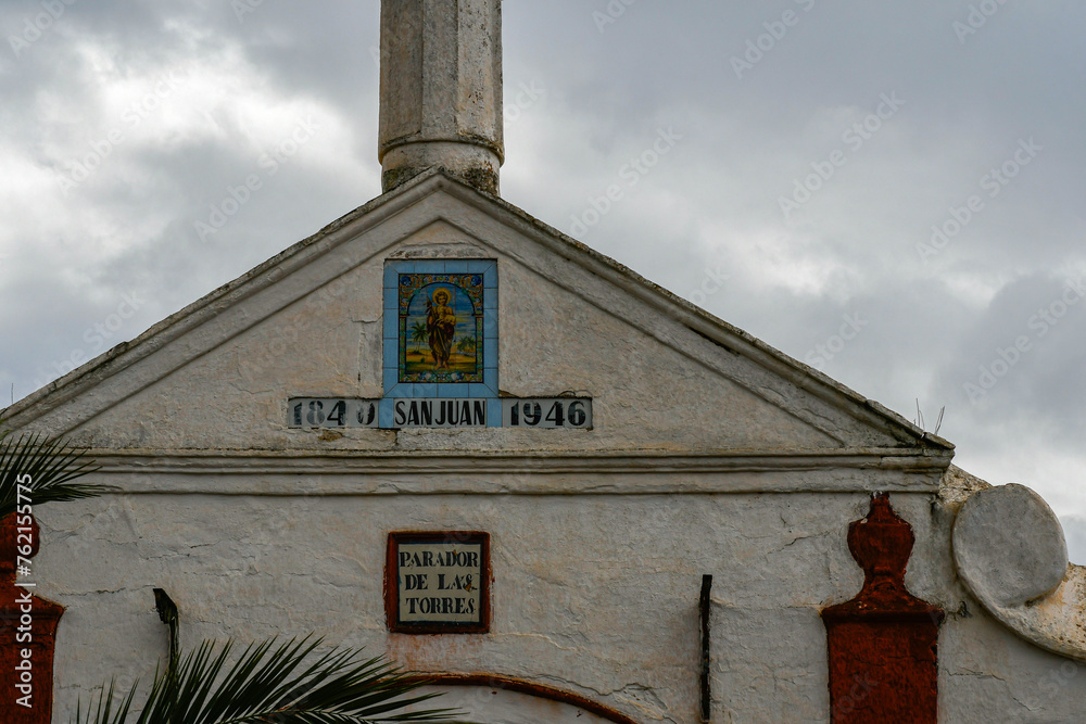Centenary Parador with religious ceramic plaque, next to the A-4 road, near the municipality of Fuentes de Andalucía, Spain