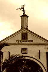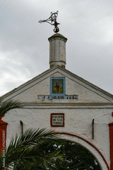 Centenary Parador with religious ceramic plaque, next to the A-4 road, near the municipality of Fuentes de Andalucía, Spain
