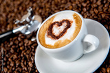 cappuccino on a lot of coffee beans