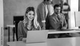 Successful businesswoman using laptop, working in office. Business technology corporate concept