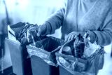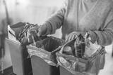 Senior woman sorting garbage in recycling bins at home