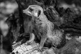 Portrait of Single Meerkat Sits on a Trunk with Alert Expression. Funny Suricata with Claws at its Natural Habitat. Isolated Suricate Watching Out for Danger.