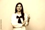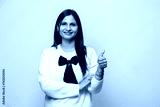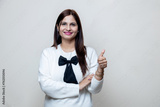 portrait of happy latin indian female showing thumbs up and looking towards the camera