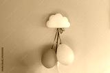 Dwa kolorowe baloniki przyczepione do lampki dziecięcej w kształcie chmurki symbolizują koncepcję rodziny oraz wydatków związanych z rodzicielstwem i wychowaniem.