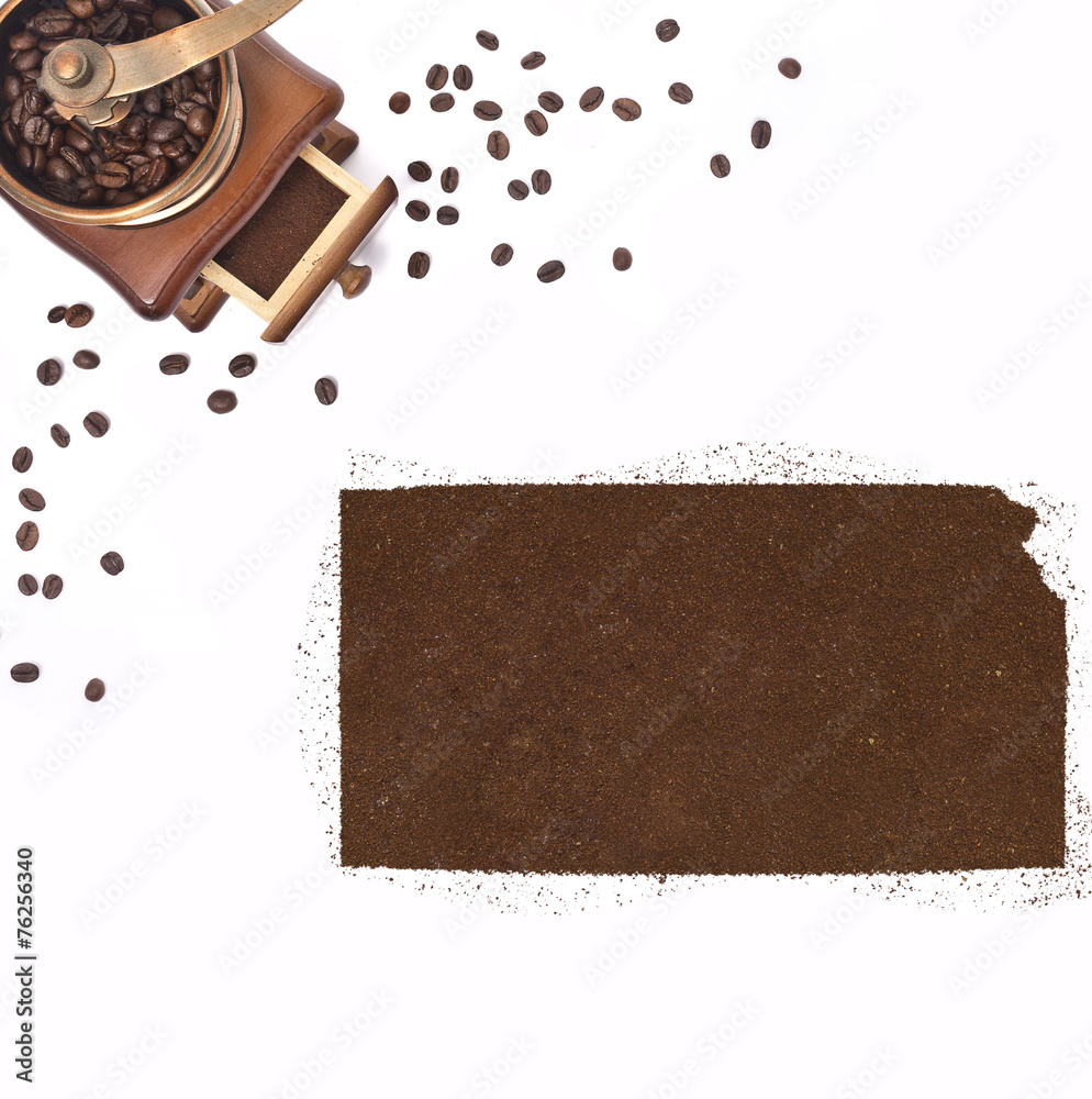 Coffee powder in the shape of Kansas and a coffee mill.(series)